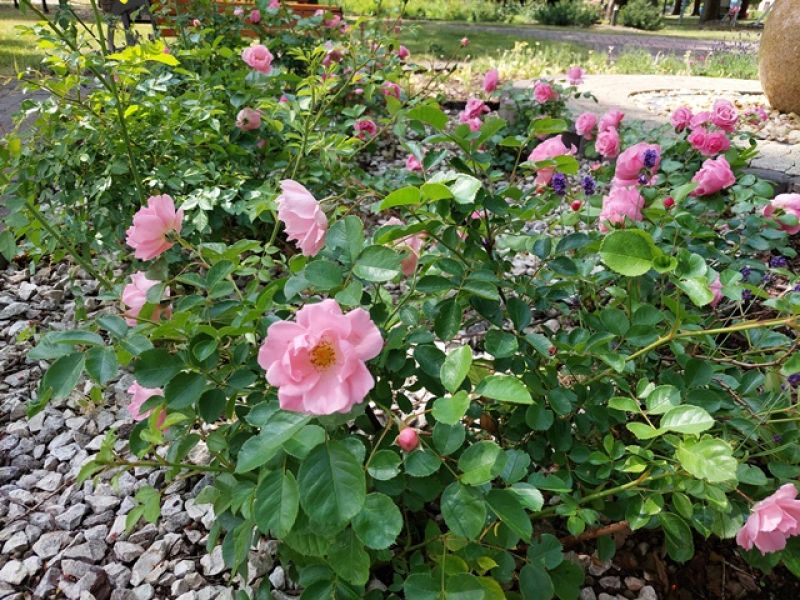 Część sadzonych na rabatach kwiatów stanowią rośliny jednoroczne, odporne na suszę, ale też i nadmierne opady, begonie, aksamitki, werbeny. Jednakże, zgodnie z wprowadzanym przez nas od kilku lat trendem, w wielu miejscach królują byliny i trawy ozdobne, a także róże okrywowe.
