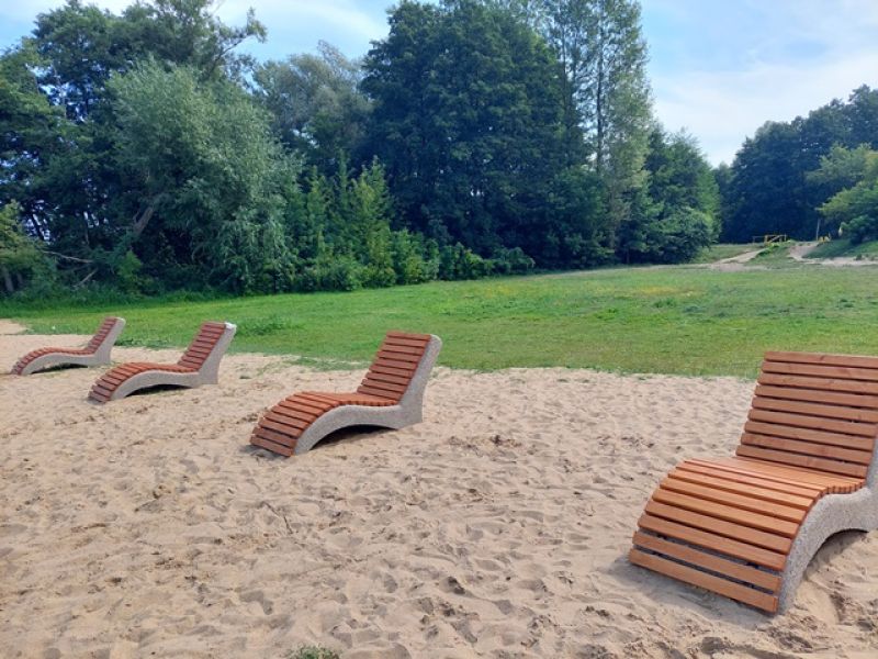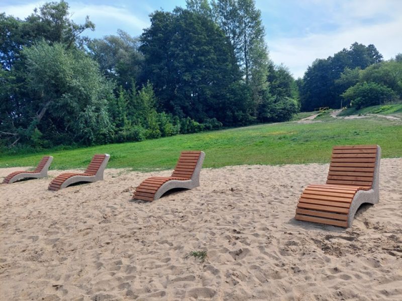 W kolejnym etapie na plaży zamontowane zostały 4 betonowe leżaki, z listwami drewnianymi. Leżaki ustawione zostały w jednej linii, frontem do wody, w taki sposób, aby umożliwić podziwianie panoramy płynącej Narwi.