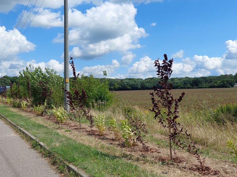 Przy kapliczce na początku ulicy Szkolnej posadzone zostały 2 ozdobne Śliwy czerwonolistne, natomiast wzdłuż drogi serwisowej prowadzącej od wiaduktu do Rezerwatu Jadwisin posadzono 50 drzew z gatunku Śliwa wiśniowa oraz 250 sadzonek krzewów z gatunku Pęcherznica kalinolistna. Posadzone drzewa i krzewy stworzą z czasem, zgodnie z oczekiwaniami mieszkańców Jadwisina, naturalny ekran ograniczający kurz i hałas od drogi krajowej.