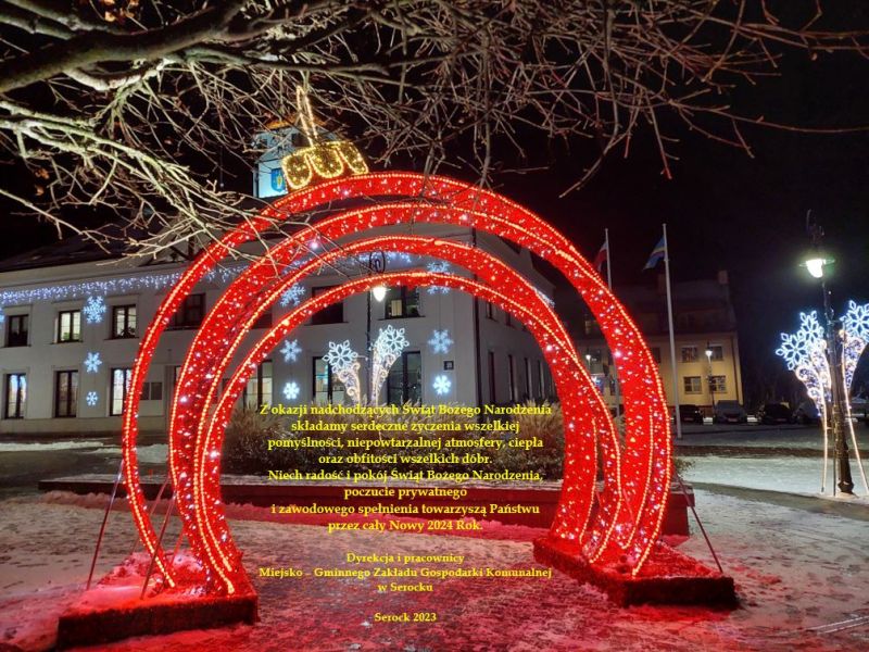Jak co roku w centralnej części na Rynku w Serocku oraz w okolicy kościoła w Zegrzu ustawione zostały choinki. Przyozdobiony został również Urząd Miasta i Gminy w Serocku oraz zamontowane ozdoby na latarniach na środku Rynku. Na Rynku, tak jak w ubiegłym roku ustawiona została brama, w kształcie świetlnej bombki a przy sali widowiskowej skrzydła anioła. Oba te elementy stanowią bardzo efektowną scenerię do zimowych zdjęć. Wzdłuż głównych ulic w Serocku, tj. ulicy Warszawskiej, Pułtuskiej i Zakroczymskiej ozdoby zostały powieszone na co drugiej latarni. W mniejszym zakresie niż zazwyczaj zamontowane zostały również dekoracje świąteczne na latarniach na terenie gminy tj. w miejscowości Zegrze, Nowa Wieś, Kania Polska, Dębe i Skubianka.