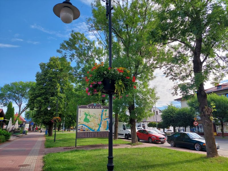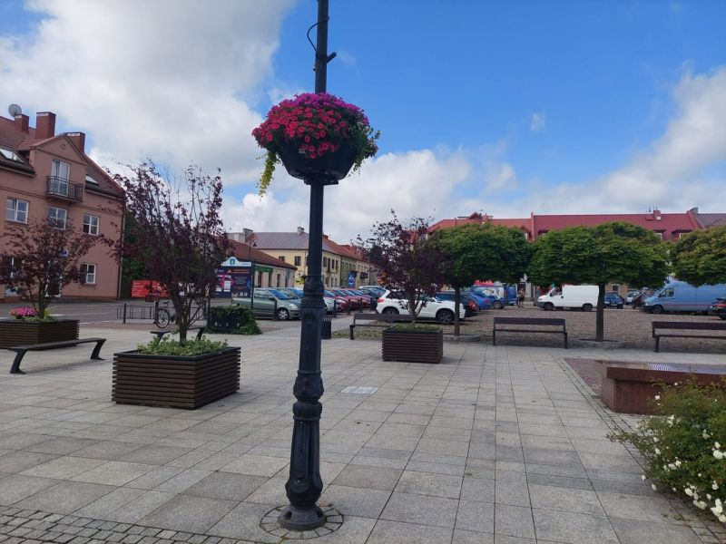 W centralnych obszarach miasta, jak co roku, ustawione zostały ozdobne donice, z wielogatunkowymi kompozycjami kwiatów. Donice ustawione są wokół Rynku Miejskiego, a także przy przystankach autobusowych usytuowanych wzdłuż ulicy Warszawskiej i Pułtuskiej. Różnobarwne kompozycje kwiatowe, znajdują się również w donicach wiszących na latarniach i zdobią ulicę Kościuszki, 11 – go Listopada, Rynek, ulicę Farną oraz Poniatowskiego i Pułtuską. Dobierając rośliny do donic, kierujemy się zasadą odporności roślin na zmienne warunki atmosferyczne. To jest podstawowy wymóg doboru roślin do ozdoby przestrzeni miejskiej. Kwiaty muszą tolerować zarówno nadmierną suszę, upał, jak i nadmierne deszcze i wiatr. Dlatego też w donicach znalazły się m.in. pelargonie kaskadowe, Supertunie Vista i trawy ozdobne.