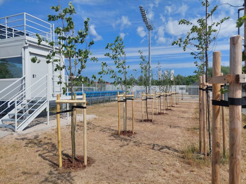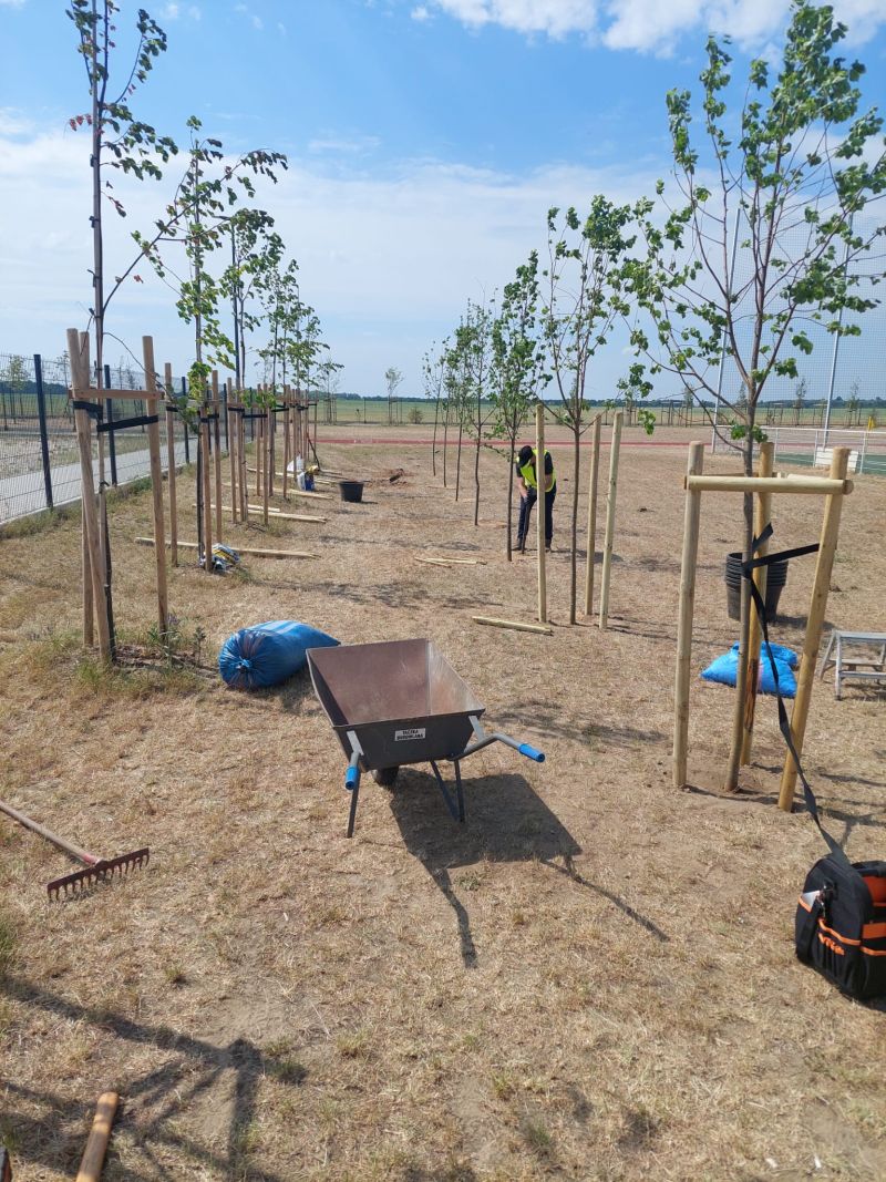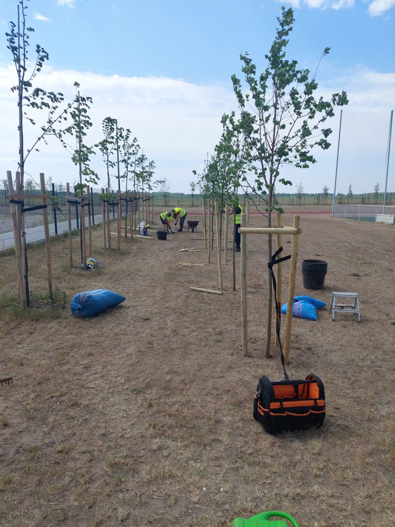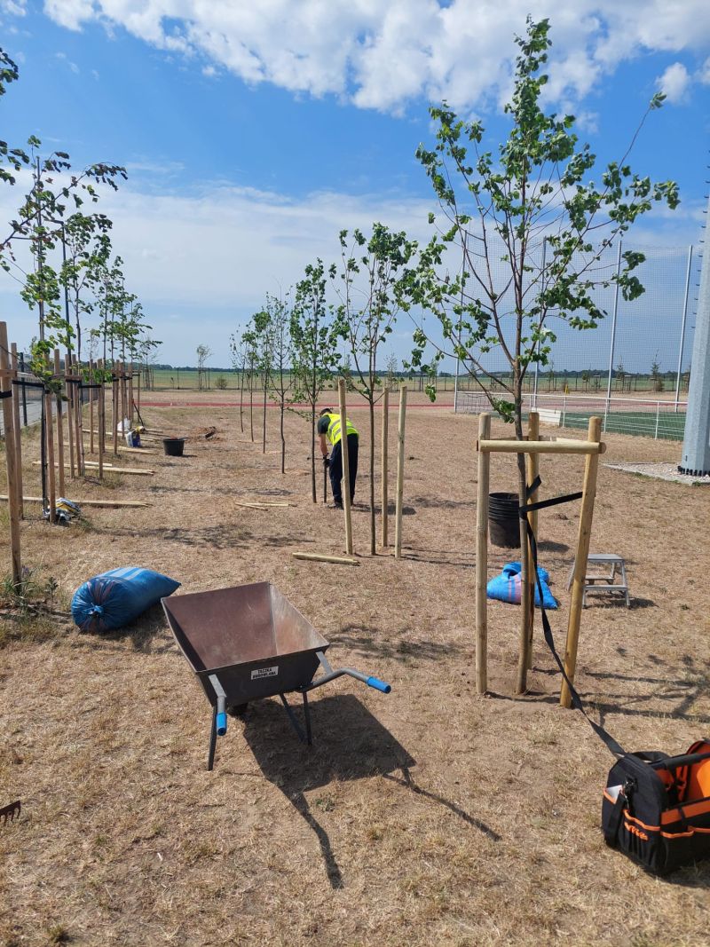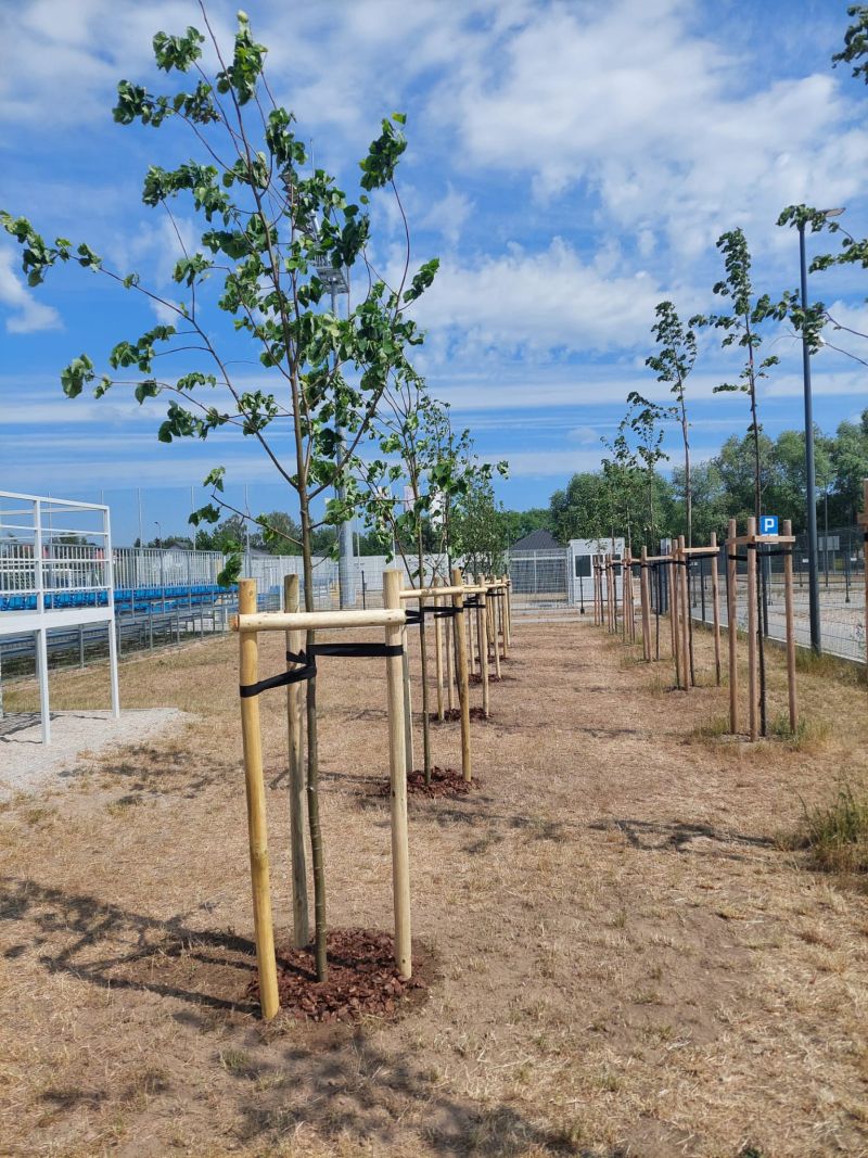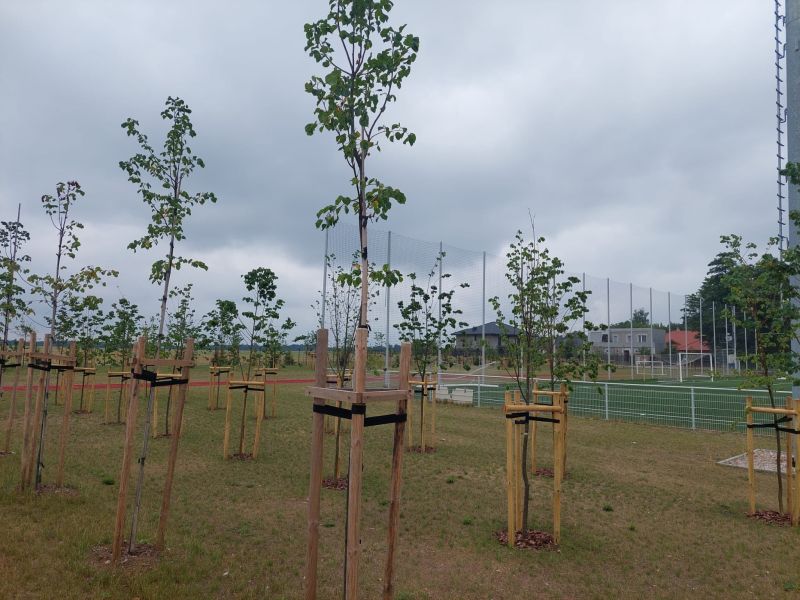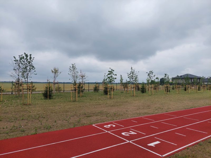 W ramach zadania posadzonych zostało przeszło 140 drzew, głównie Lip drobnolistnych, ale również świerków pospolitych i sosen zwyczajnych oraz 70 sztuk krzewów z gatunku Bez Lilak. Posadzone rośliny utworzą docelowo pas zieleni izolacyjnej wokół zbudowanego w 2022 roku boiska. Powstały pas zieleni będzie miał znaczącą rolę zarówno dla korzystających z obiektu, których osłoni od wiatru z pobliskich pól, a także będzie naturalnym wyciszeniem odgłosów gry, co z kolei wpłynie pozytywnie na okoliczną zabudowę jednorodzinną.
