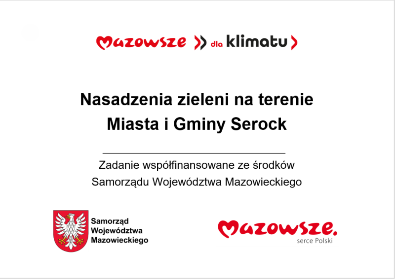 Zadanie pn. Nasadzenia zieleni na terenie Miasta i Gminy Serock współfinansowano ze środków Samorządu Województwa Mazowieckiego